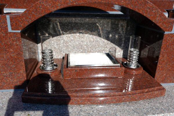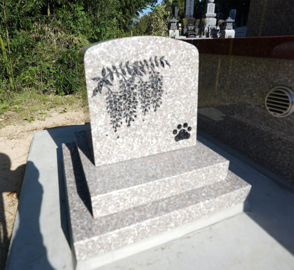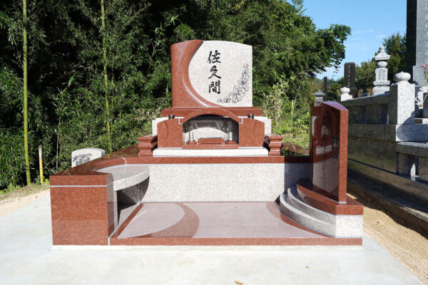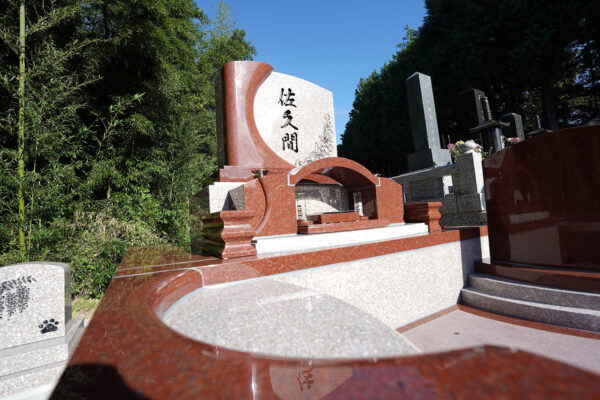 ムーン 2025年10月14日 こんにちは 過ごしやすい季節になりました。秋空が気持ちよい季節です。 「 中秋の名月」の頃 赤&桜色のムーンが完成いたしました。 紅葉にも重なってまるでムーンの完成を祝っているかの様です。 映えますねー 滑らかで柔らかく、優雅なカーブ 曲線が美しいく赤&桜色のコントラストが絶妙です。 ご先祖様をお迎えするローソク立ても完備 今は人生の一部になったペット 日常生活に深く溶け込み、精神的な支えや喜びの源になっていることを意味します。 そのかわいいペットのお墓も一緒に建墓致した↓。