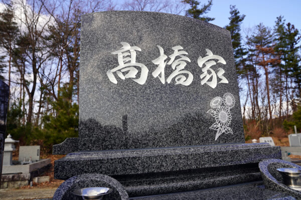 施主様と念密な打ち合わせをして竿石にはひまわりの花を彫刻