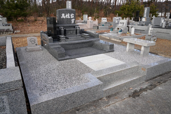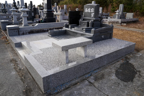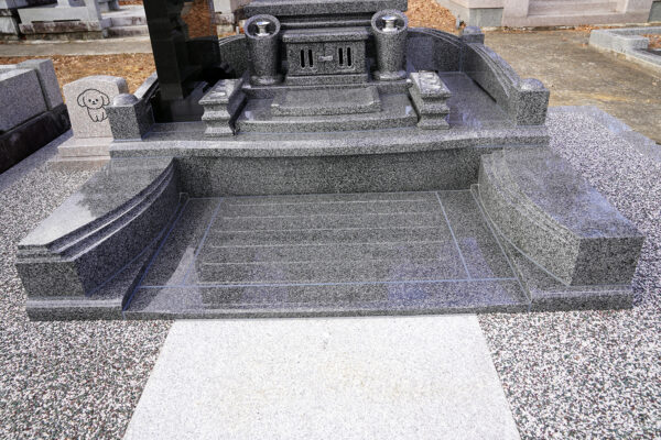 大きい敷地のでしたが、もともとあった外柵は、そのままにして地震に耐えられるように全面基礎工事を行い洋型墓石を建墓。